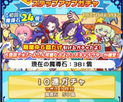 http://puyomas.gg-blog.com/kamihiki/%E5%BD%93%E3%81%9F%E3%82%8B%E3%81%BE%E3%81%A7%E5%9B%9E%E3%81%97%E3%81%9F%EF%BC%88%E3%82%B9%E3%83%86%E3%83%83%E3%83%97%E3%82%A2%E3%83%83%E3%83%97%E3%82%AC%E3%83%81%E3%83%A3%EF%BC%89当たるまで回した(ステップアップガチャ)