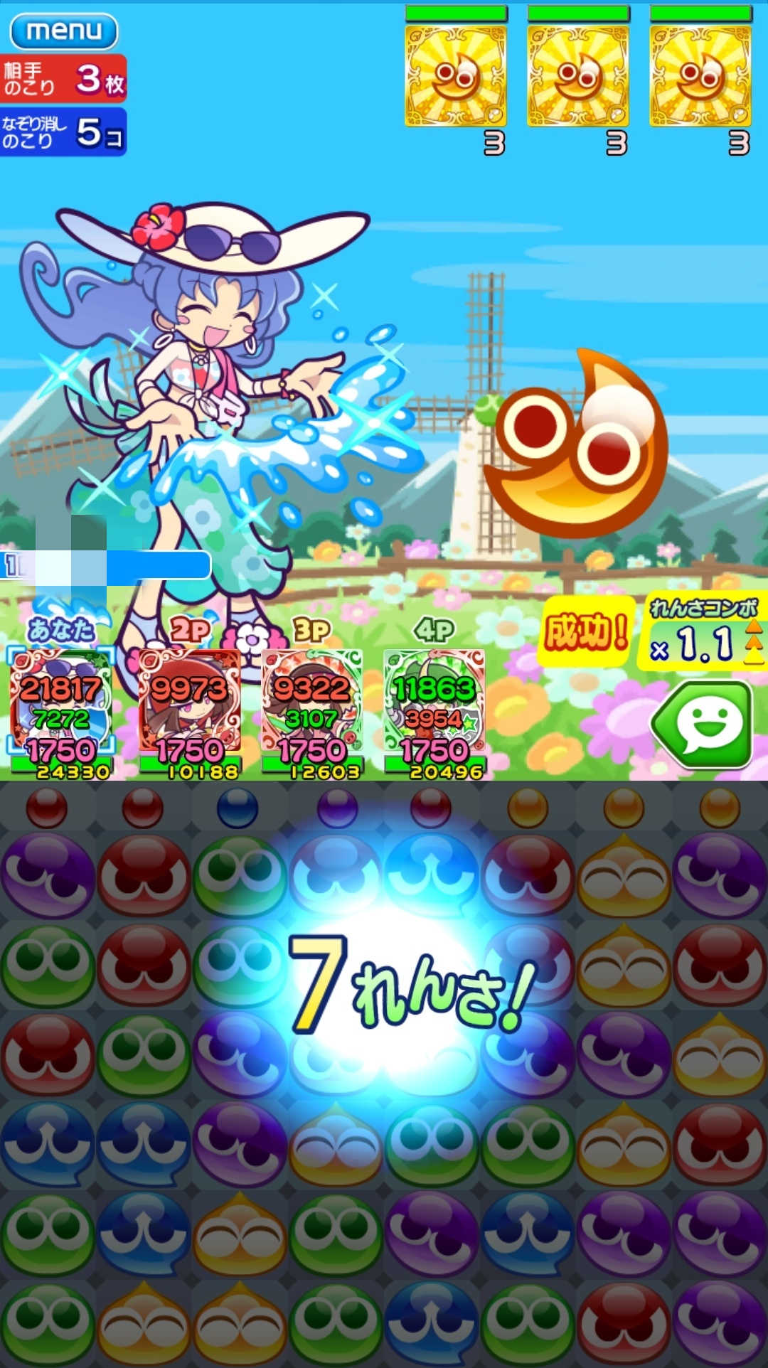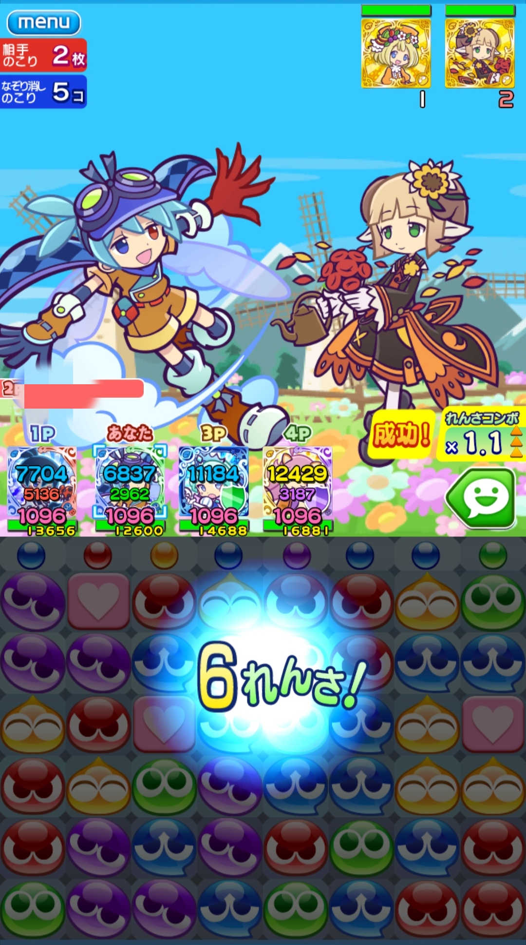 全員4連鎖が達成できませんでしたよ。