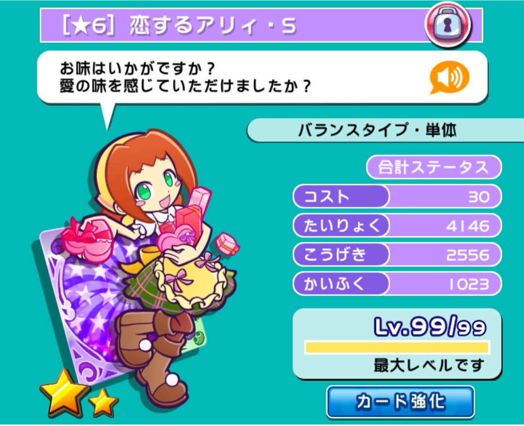 恋するアリィが報酬カードで登場しました。